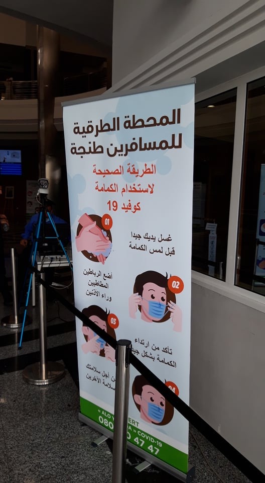 A l’entrée de la gare, le journal « La Chronique » a été accueilli par un staff en alerte sanitaire et administrative dont le directeur adjoint de la TGRV, Monsieur AbdelkhalekAdahak. Ils veillaient sur le respect des mesures sanitaires contenues dans le cahier des charges mentionné au début de cet article. Tout d’abord, le port du masque, rappellent des pancartes, est obligatoire pour accéder à l’enceinte de la gare. « Les responsables de la gare procureront un masque au voyageur qui n’en porte pas pour ne pas le priver de sonvoyage,» a assuré notre interlocuteur. D’autres mesurent s’annonçaient rapidement. Tout voyageur doit subir une prise de température par un dispositif sophistiqué : Une caméra reliée à un ordinateur. Rien à voir avec les thermomètres numériques des grandes surfaces et autres lieux publics. « Une salle d’isolation a été prévue pour les cas suspects. » a précisé le directeur adjoint.