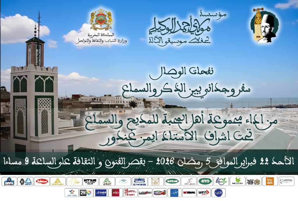 L’animation sera assurée par l’ensemble Ahl Al Mahaba, dirigé par Aymane Ghandour, dont la maîtrise des répertoires spirituels et la sensibilité artistique promettent un moment d’exception.